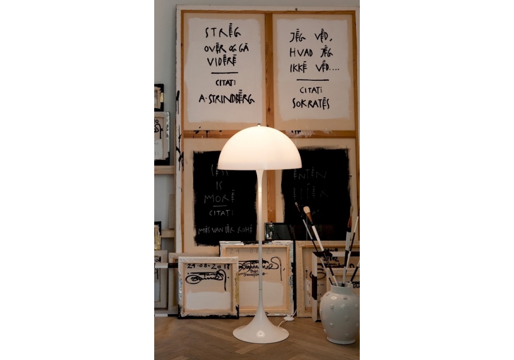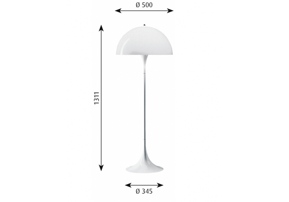 Panthella diseñada por Verner Panton para Louis Poulsen es una lámpara de pie con base circular y estructura portante en ABS moldeado blanco. El difusor es de PMMA estampado blanco y apantalla una fuente de luz LED o halógena con casquillo E27.