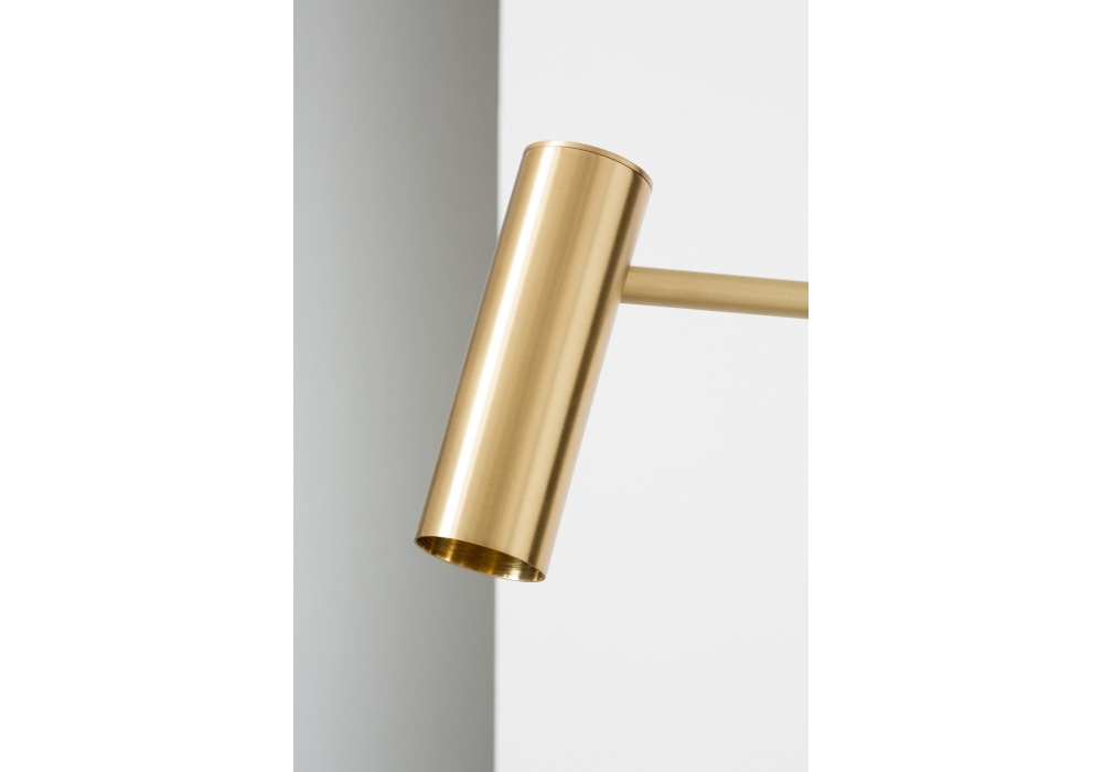 Heron diseñada por CTO Lighting es una lámpara de pie en acabado latón satinado o bronce con base de metal o mármol a elegir.