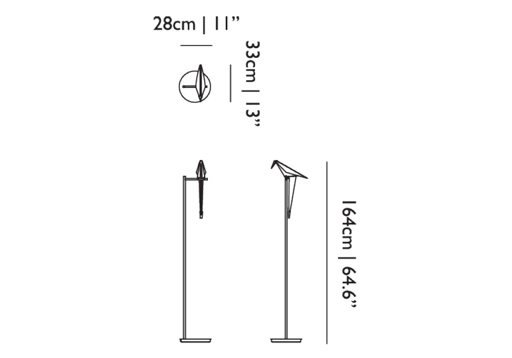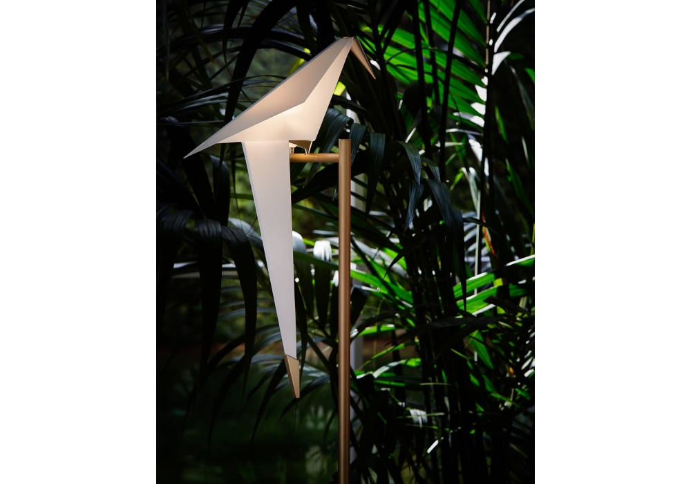 Perch Light diseñada por Umut Yamac para Moooi es una lámpara de pie LED con estructura de acero y aluminio con difusor de policarbonato y papel sintético.