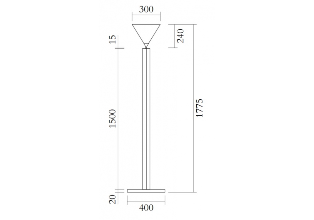 Column Cone es una lámpara de pie caracterizada por un marco de latón pulido y una pantalla en forma de cono de vidrio. La base está en acabado negro. Bombilla no incluida.