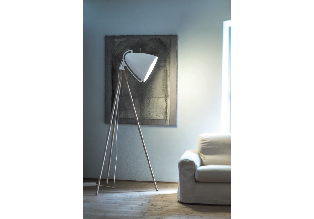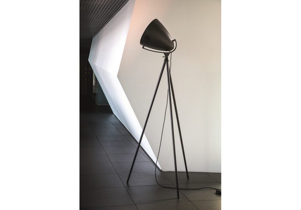 Faro Next diseñada por Hannes Wettstein para Pallucco es una hermosa lámpara de pie. La pantalla, con su forma única, está montada sobre un trípode de roble con acabado lacado. La pantalla se puede configurar para donar una luz directa o blanda, de intensidad regulable, con fuente de iluminación halógena o LED. Tres versiones cromáticas: negro total, blanco total, o bien con la pantalla en blanco o negro y trípode acabado roble natural.