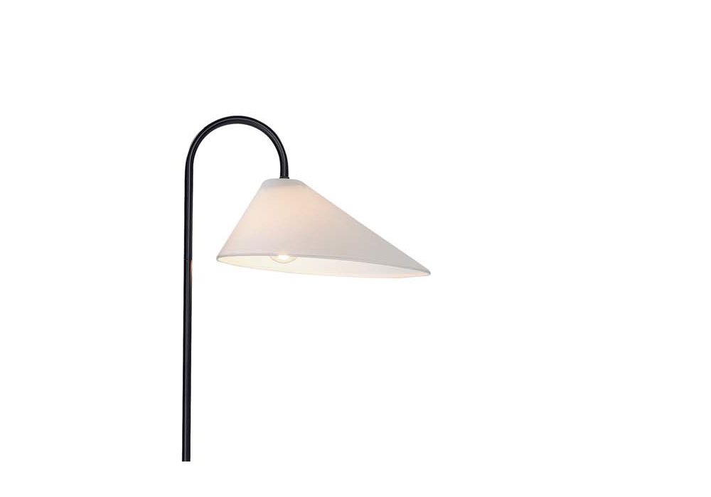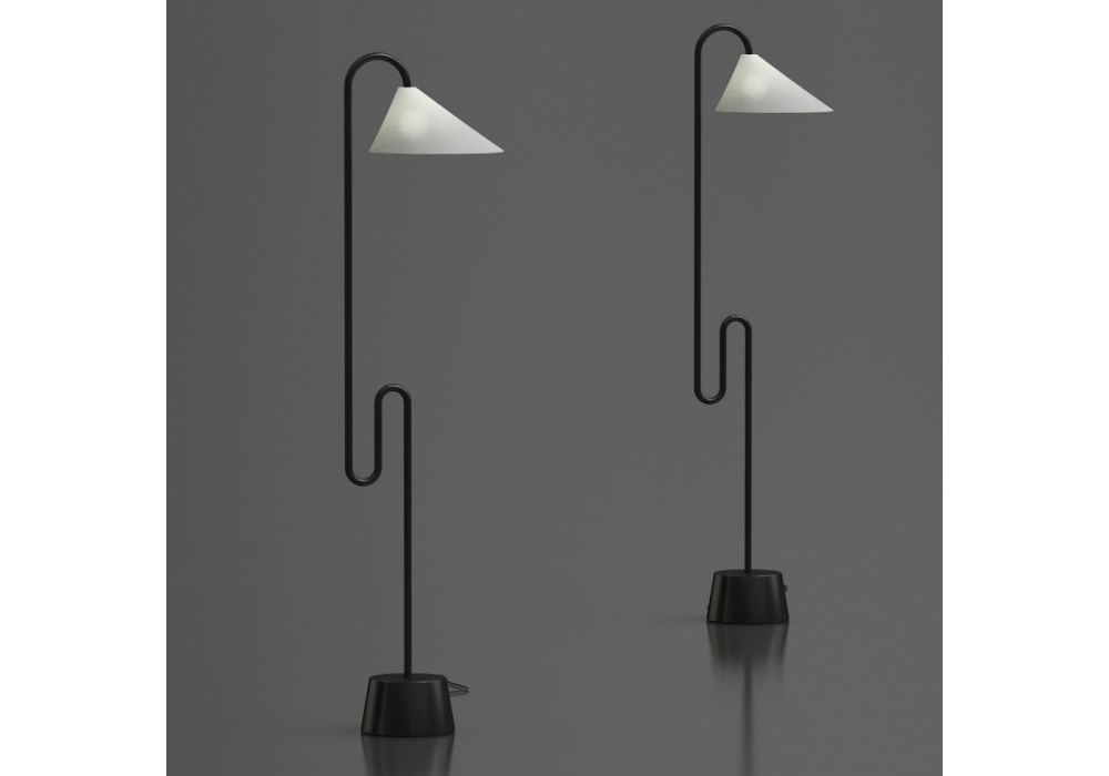 Roattino diseñada por Eileen Gray para ClassiCon es una lámpara de pie con base en tubo de acero y estructura en forma de S, lacada en negro o blanco crema. El cabezal de la lámpara se puede girar horizontalmente. Pantalla en tela blanca, laminada interiormente. Interruptor de pie, regulable.