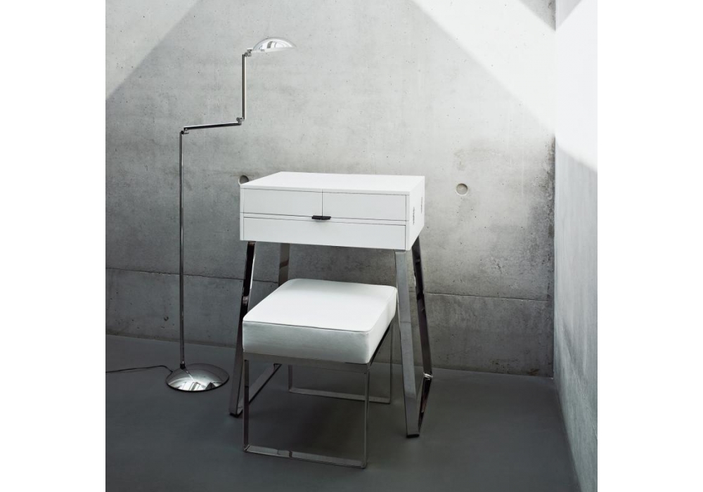 Orbis diseñada por Herbert H. Schultes para ClassiCon es una lámpara de pie, totalmente ajustable. Cable con interruptor y atenuador de luz integrado. Estructura lacada negra, blanca o totalmente cromada.