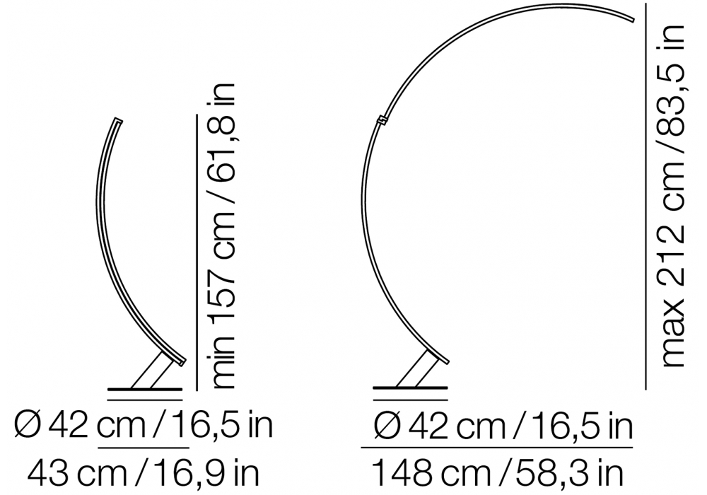 Kyudo diseñada por Hansandfranz para Kundalini es una lámpara de pie con difusor montado sobre un riel deslizante libremente ajustable, estructura en aluminio extruido pintado brillante y tira de LED de bajo voltaje. Disponible en diferentes acabados.
