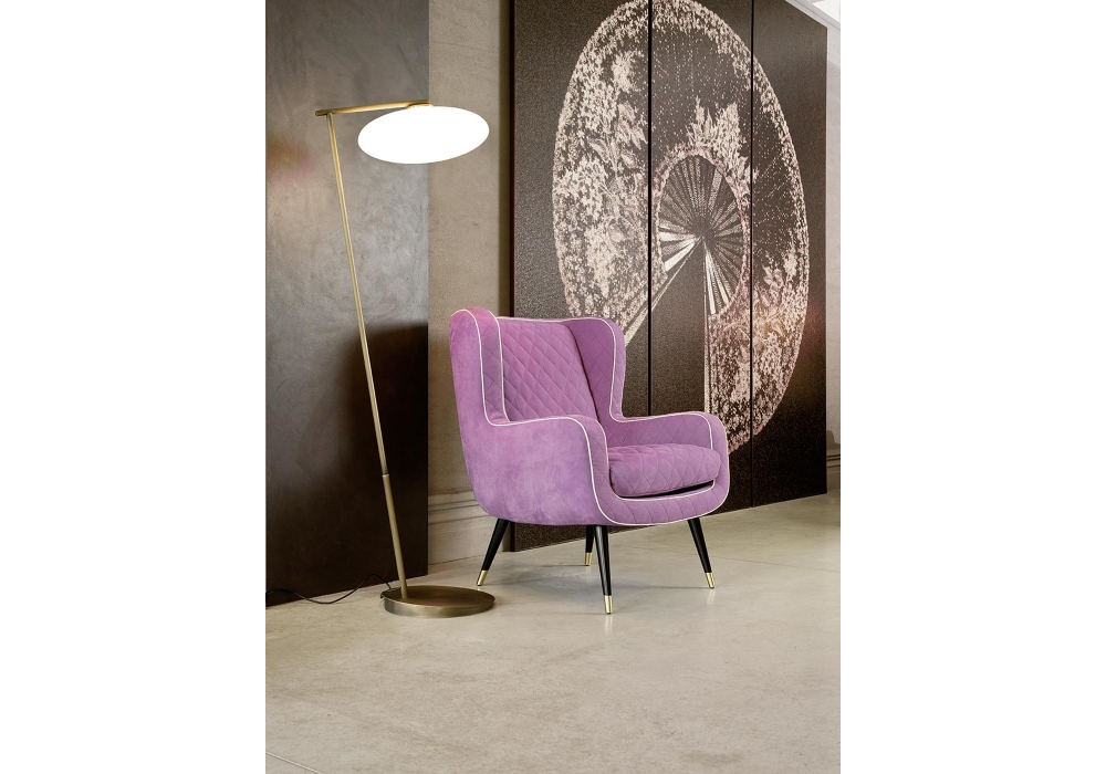 Mamì diseñada por Umberto Asnago para Penta es una lámpara de pie con base circular y barra vertical en metal color grafito o bronce. El difusor es de cristal soplado blanco y apantalla una fuente de luz tipo LED con sistema dimmer en el cable de alimentación. Mamì está disponible en diferentes acabados y degradados de luz.