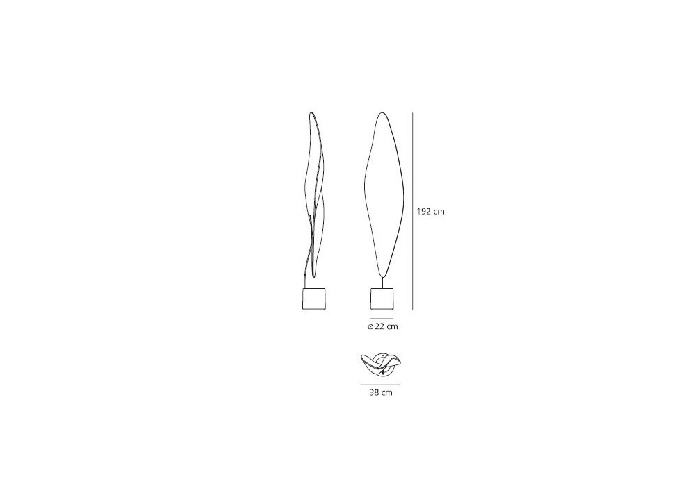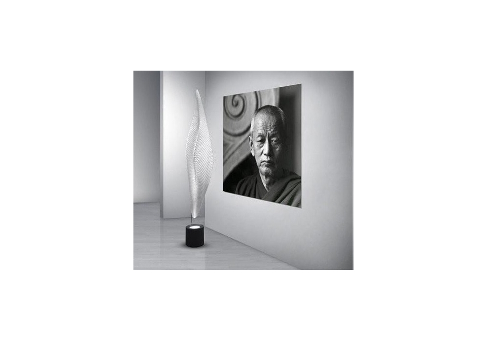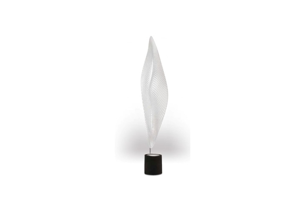 Cosmic Leaf diseñada por Ross Lovegrove para Artemide es una lámpara de pie con base cilíndrica en metal pintado. El cuerpo de iluminación se incorpora a la base mediante una fuente de luz LED, mientras que el difusor es de metacrilato transparente texturizado.