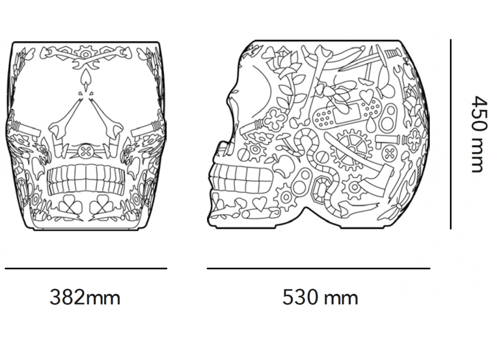 Mexico diseñada por Studio Job para Qeeboo es una lámpara realizada en polietileno translúcido opaco. México es apta tanto para uso interior como exterior con 16 colores LED, mando a distancia, batería recargable con una autonomía de 6 horas.