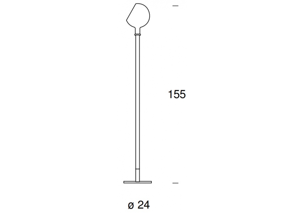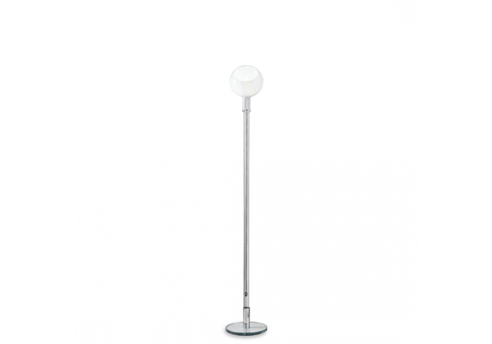 Parola diseñada por Gae Aulenti & Piero Castiglioni para Fontana Arte es una lámpara de pie regulable de luz difusa con interruptor de suelo deslizante. Estructura y base enteramente en vidrio borosicato y base injertada en metal cromado. El difusor es esférico en vidrio soplado en color ámbar o blanco. Disponible en diferentes acabados.