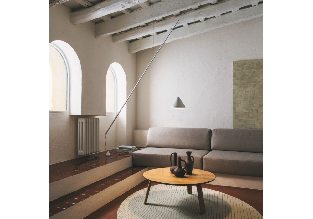 North diseñada por Arik Levy para Vibia es una lámpara de pie/suspensión con varilla de acero tubular pintado con contrapeso de aluminio. La pantalla está fabricada en aluminio y adopta un difusor de metacrilato que blinda una fuente de luz LED con interruptor de encendido/apagado. Norte está disponible en diferentes acabados.