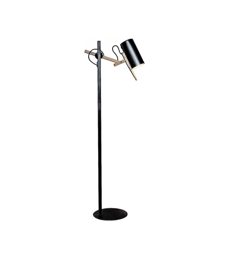 Scantling P40 diseñada por Mathias Hahn para Marset es una lámpara de pie con estructura en hierro, difusor en aluminio y brazo en roble. Base, pie y difusor disponibles en acabados blanco o negro.