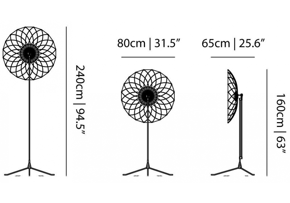 Filigree diseñada por Rick Tegelaar para Moooi es una lámpara de pie realizada en PP translúcido, latón, acero inoxidable y aluminio. Altura ajustable.