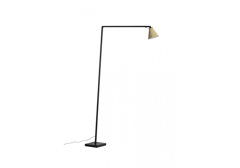 Untitled Reading Cone diseñada por Bernhard Osann para Nemo es una lámpara de pie con base cuadrangular y estructura tubular en aluminio extruido pintado negro mate. El difusor tiene forma cónica y alberga una fuente de luz LED regulable en diferentes tonalidades de luz. El cono de lectura sin título está disponible con difusor dorado o negro.