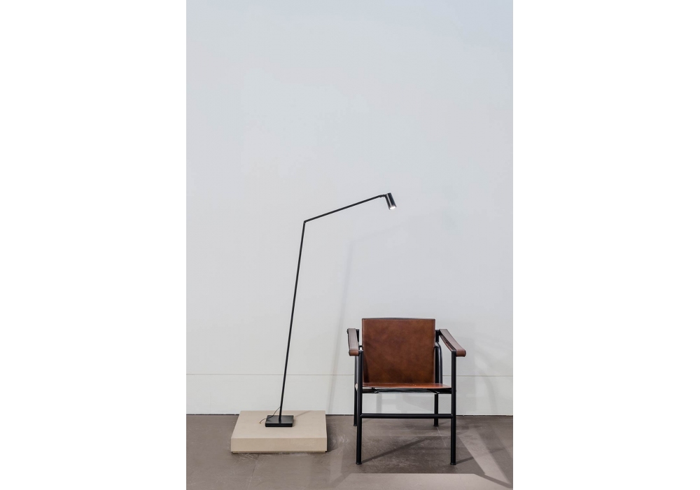 Untitled Reading Spot diseñada por Bernhard Osann para Nemo es una lámpara de pie con base cuadrangular y estructura tubular en aluminio extruido pintado. El difusor tiene forma cilíndrica y alberga una fuente de luz LED regulable en diferentes tonalidades de luz.