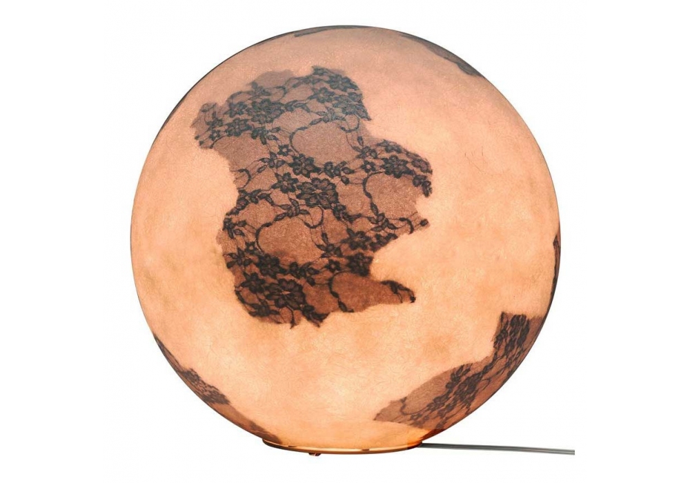 Ululì diseñada por Matteo Ugolini para Karman es una lámpara de pie en fibra de vidrio/encaje blanco.