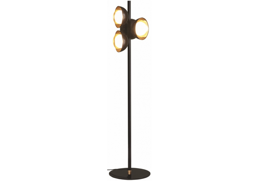 554 Muse diseñada por Corrado Dotti para Tooy es una lámpara de piso con estructura de metal negro arena y pantalla de vidrio doble con cúpula interna de diferentes acabados. Esta lámpara de piso también está disponible con un regulador integrado en el cable. Bombilla no incluida.