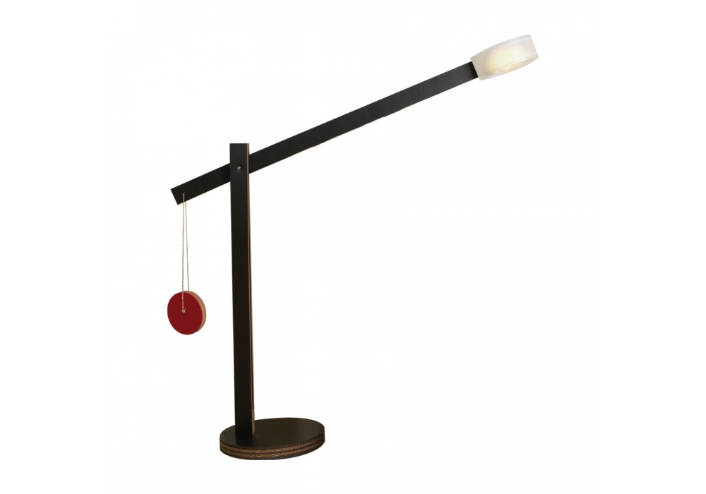 Flaminga designed by Kubedesign is a three-dimensional cardboard floor lamp with a wooden element as a counter-weight. Equipped with a joint to direct the light beam, the lamp is covered with white, black or red shockproof material.