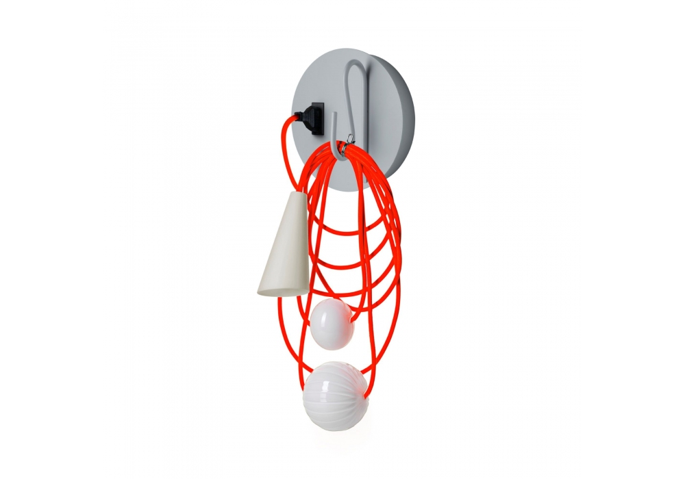 Filo diseñada por Andrea Anastasio para Foscarini es una lámpara de pared con estructura portante en metal pintado. El difusor tiene forma cónica en vidrio soplado y alberga una fuente de luz LED retrofit alimentada por un cable de fibra textil adornado con decoraciones en material de vidrio. Filo está disponible en diferentes acabados.