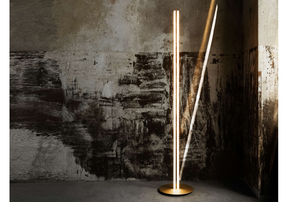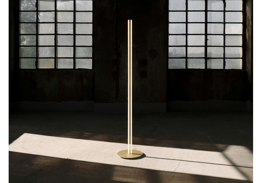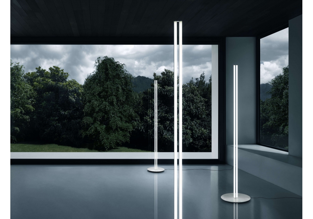 Coordinates, diseñada por Michael Anastassiades para Flos, es una lámpara de pie de luz difusa compuesta por dos varillas verticales ajustables durante la instalación y fijadas a una base con un disco de cubierta de aluminio anodizado. Cada elemento consta de un cuerpo de aluminio extruido anodizado y un difusor de silicona óptica platino con una tira LED integrada. Cable de alimentación con pedal regulador de intensidad para encendido/apagado y ajuste de brillo del 10 al 100 %. Enchufe multiestándar.