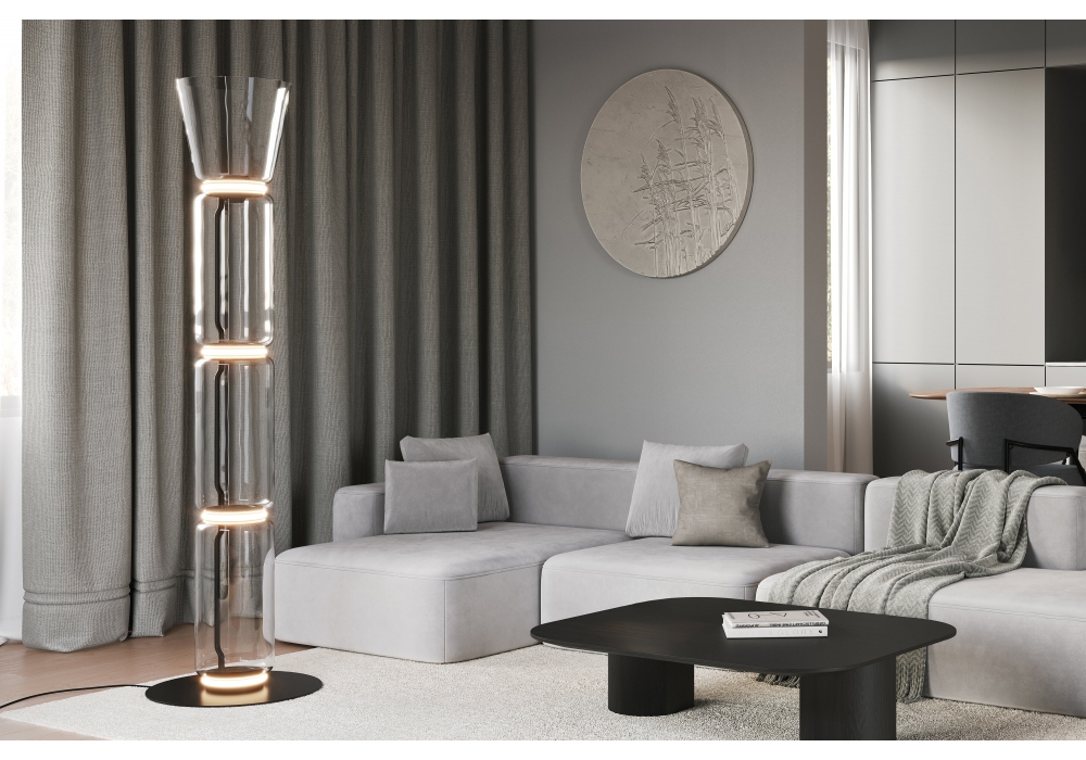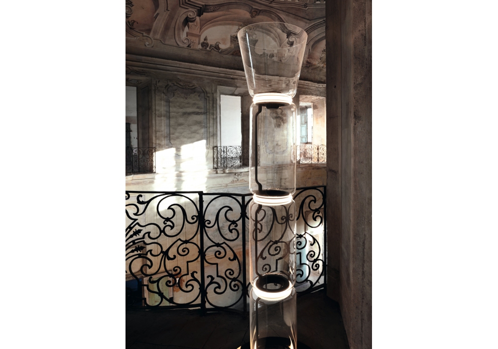 Noctambule diseñada por Konstantin Grcic para Flos es una lámpara de pie con estructura cilíndrica en vidrio soplado y base en aluminio inyectado. El módulo de vidrio superior está disponible en tres versiones: cilíndrico, cónico o de copa. La fuente de luz es LED regulable mediante dimmer. Noctambule está disponible en diferentes versiones y tamaños.