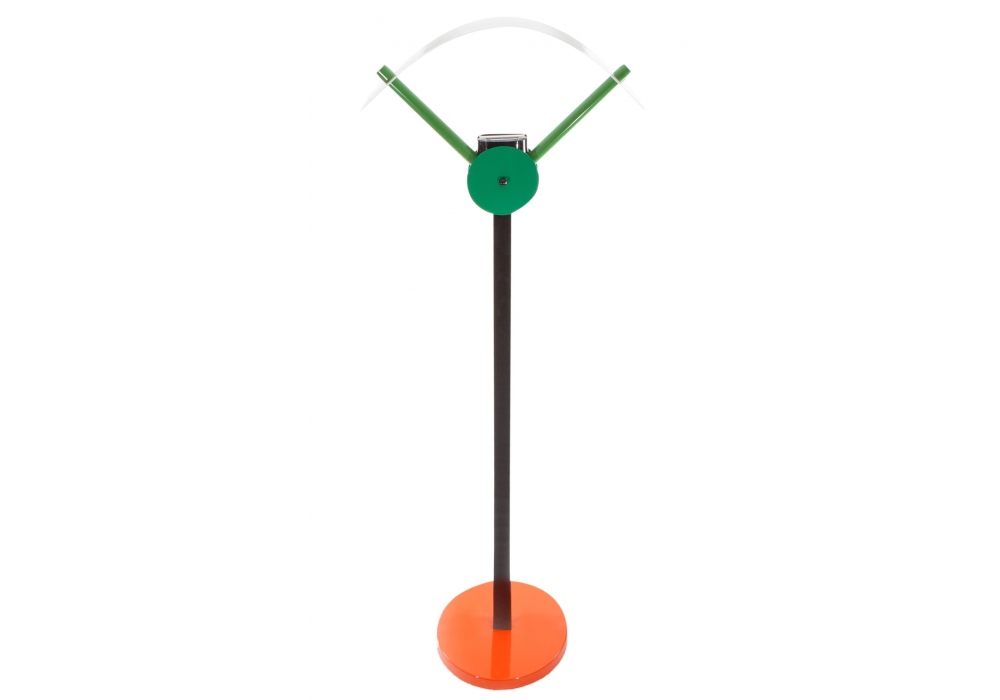Grand diseñada por Michele De Lucchi para Memphis Milano es una lámpara de pie realizada con estructura metálica y pantalla de plexiglás.