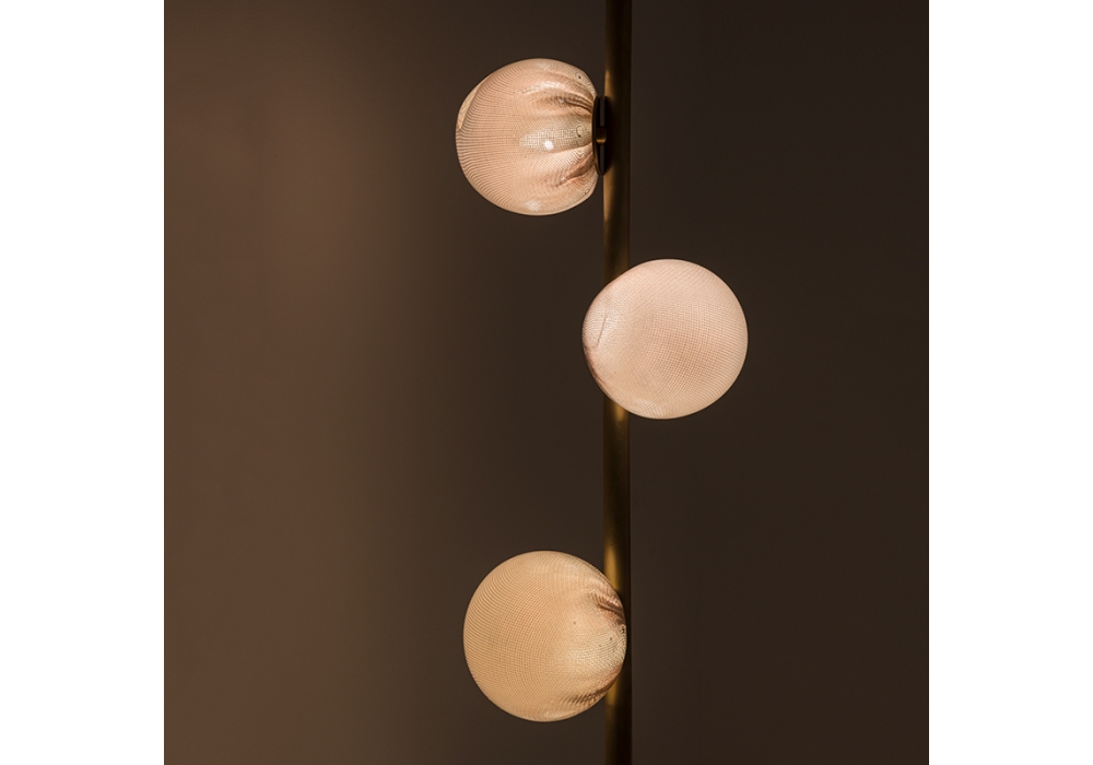 84 Stem diseñada por Omer Arbel para Bocci es una lámpara de pie con estructura tubular y base circular de latón disponible en dos acabados diferentes, latón o negro mate. Los difusores son de vidrio soplado con fuente de luz LED. 84 Stem está disponible en diferentes versiones y tamaños.