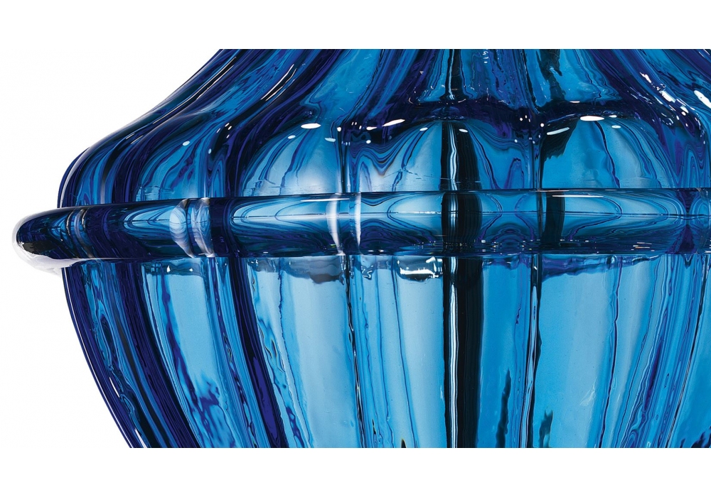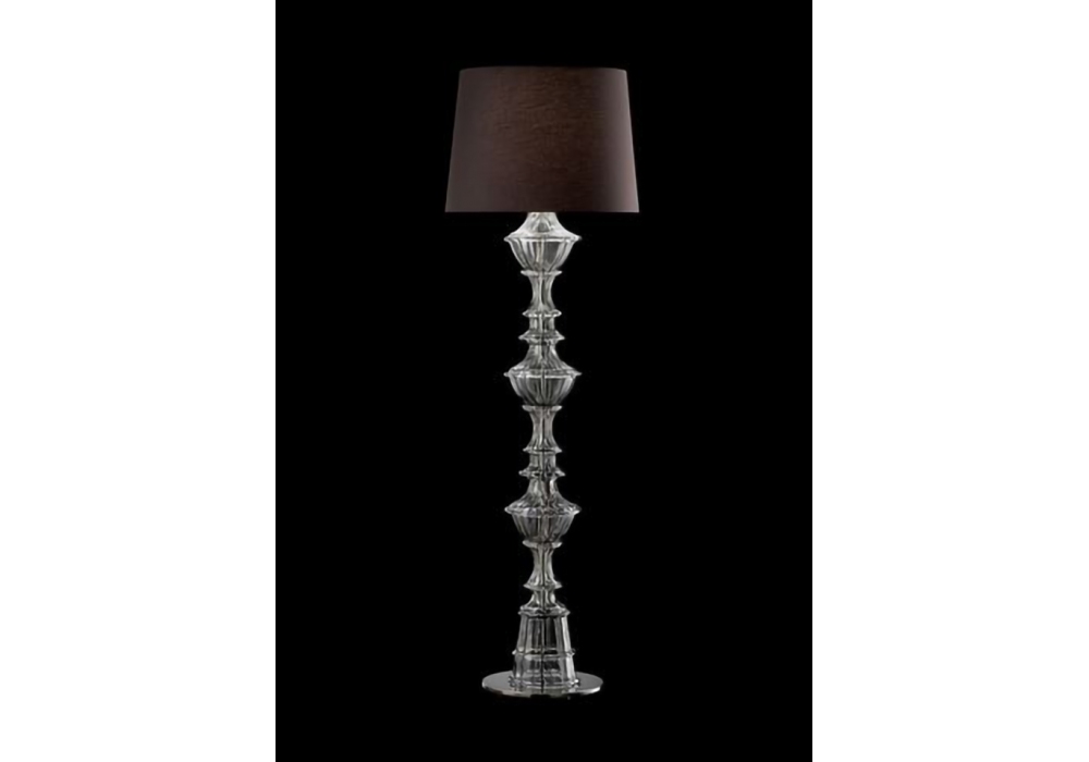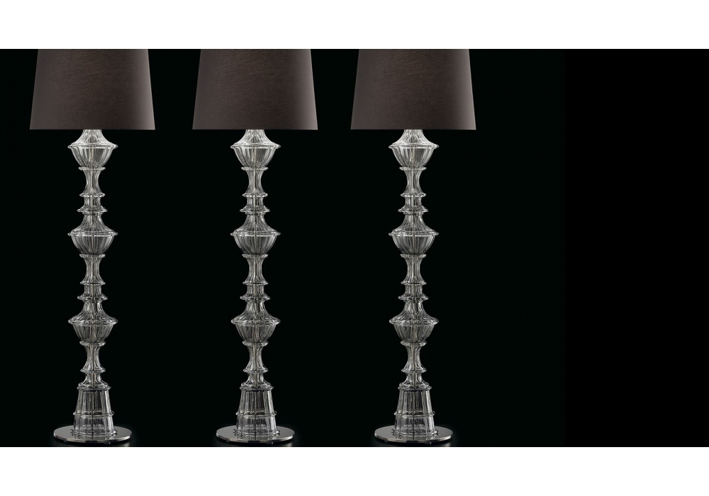 Samurai diseñada por Angelo Barovier para Barovier & Toso es una lámpara de pie con base circular en latón cepillado o metal cromado negro. El cuerpo de la lámpara tiene un núcleo metálico tubular revestido de cristal veneciano con una superficie rayada y trabajada. La pantalla es de tela y protege una fuente de luz LED o halógena regulable. Samurai está disponible en diferentes acabados.