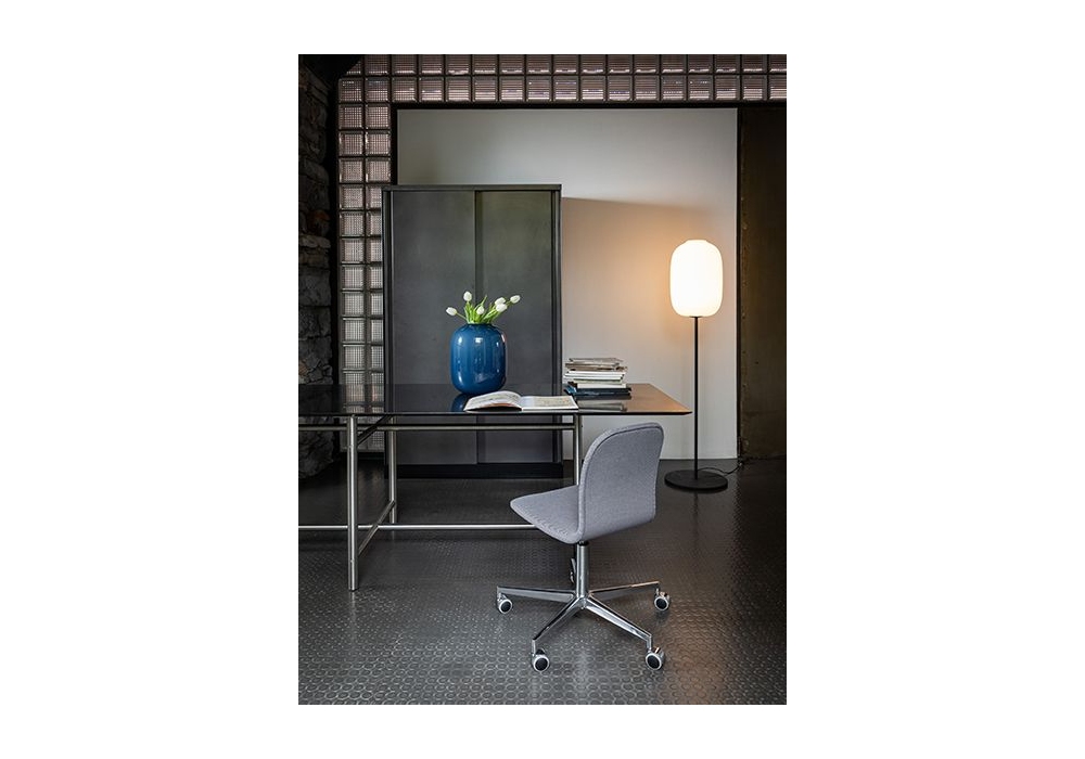 Arya diseñada por Giulio Cappellini & Antonio Facco para Cappellini es una lámpara de pie realizada con placa y tubo en metal pintado negro mate y difusor en cristal de color mate. Disponible en diferentes acabados y dimensiones.