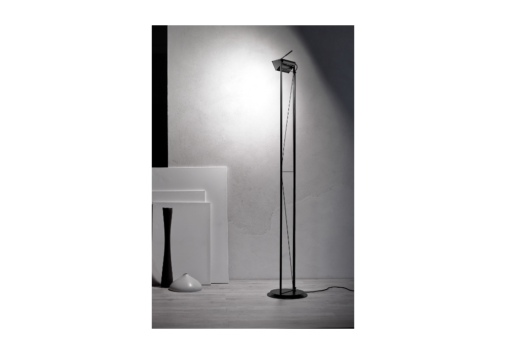 Opus diseñada por Walter Monici para Lumina es una lámpara de pie estructurada por un sistema de celosía y una base circular de metal en diferentes acabados. El difusor es de forma cuadrangular en metal con mango ergonómico para dirigir el haz de luz a tu gusto gracias a un giro de 240°. La fuente de luz utilizada es del tipo halógena regulable (incluida).