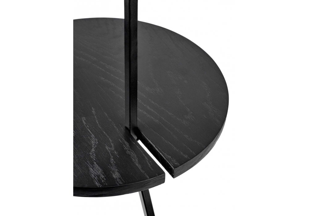 Stehleuchte von Studio Simple für Serax entworfen, mit gegliederter Struktur, bestehend aus einem dreibeinigen Fuß aus schwarz lackiertem Holz und einem gewölbten Metallrohrstab in schwarzer Ausführung. Die Lichtquelle ist LED oder Halogen (nicht im Lieferumfang enthalten), mit E27-Kupplung.