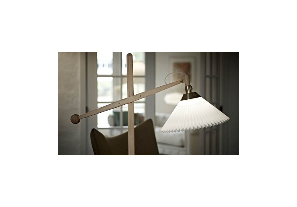 325 diseñada por Vilhelm Wohlert para Le Klint es una lámpara de pie compuesta por la combinación de metal, madera de roble, papel y material plástico. La estructura está concebida por una base metálica circular y dos varillas de madera de roble, una vertical alojada en la base, y otra horizontal sobre la que se apoya la pantalla. La pantalla es de material plástico o papel sostenida por una estructura de latón y adopta una fuente de luz LED o halógena (no incluida). 325 está disponible con difusor en material plástico o en papel precioso.