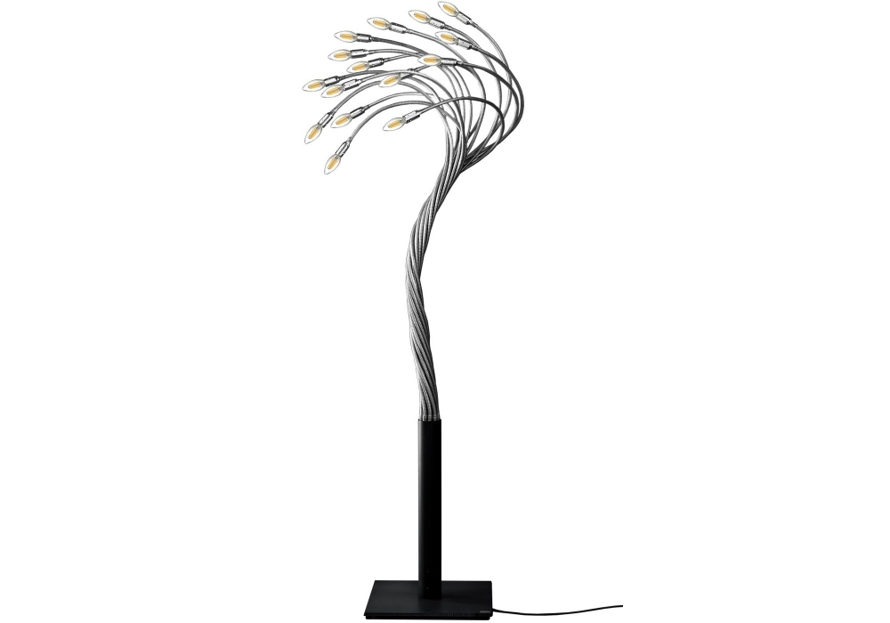 Sottovento 15 diseñada por Enzo Catellani para Catellani & Smith es una lámpara de pie LED con dimmer de piso. La base es de hierro bruto encerado, y la estructura está realizada con 15 flexos moldeables de latón o níquel.