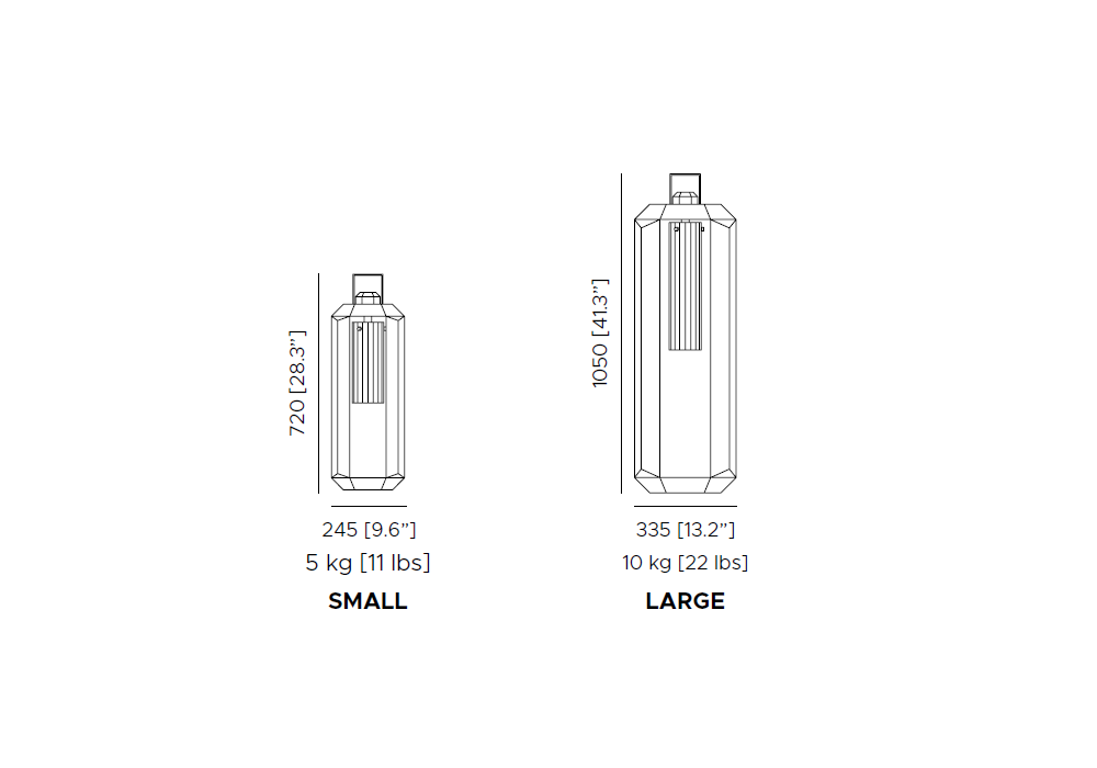 | Dimensiones | 24.5 x 24.5 x H 72 cm; 33.5 x 33.5 x H 105 cm. |