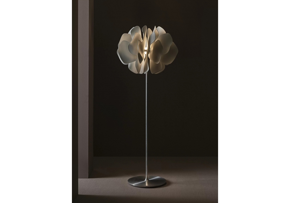 Nightbloom esculpida por Dept. Diseño y Decoración y diseñada por Marcel Wanders para Lladró es una lámpara de pie con base circular y estructura portante tubular de metal. El cuerpo difusor está formado por un juego de pétalos de porcelana hechos a mano. Nightbloom está disponible en diferentes acabados.