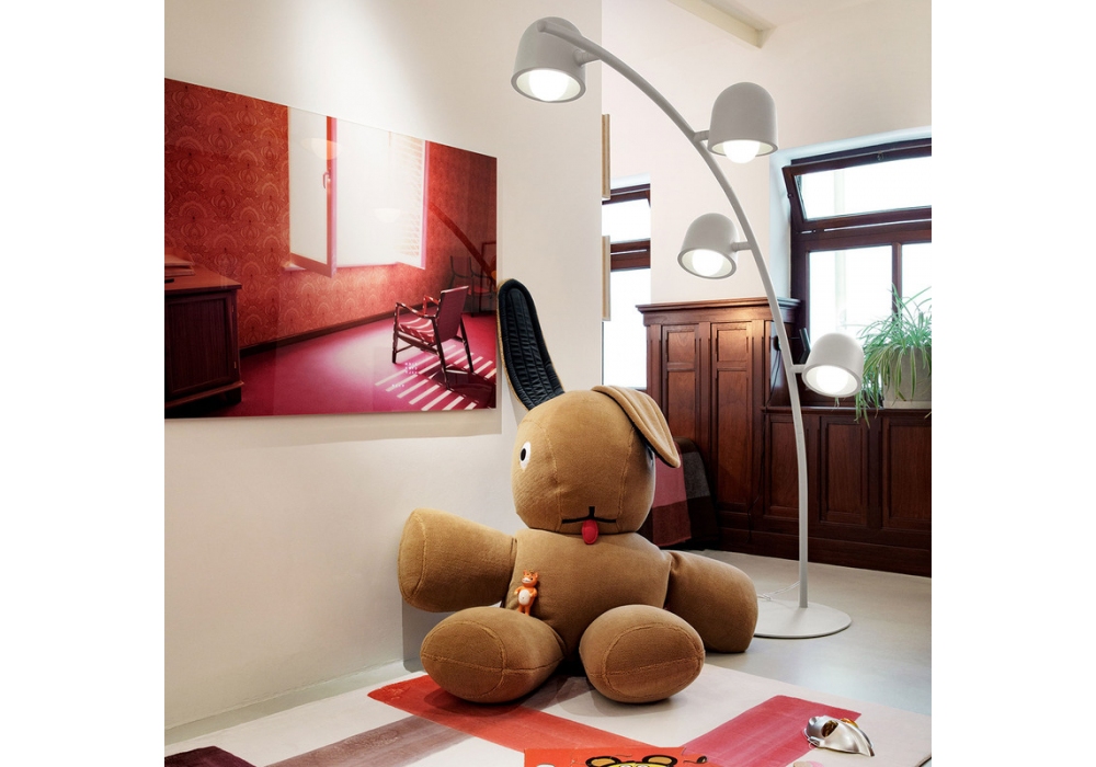 Big Lebow diseñada por Kranen / Gille es una lámpara de pie realizada en acero con recubrimiento en polvo. Las tapas de aluminio ajustables le permiten decidir de forma independiente hacia dónde dirigir la luz. Disponible en diferentes acabados