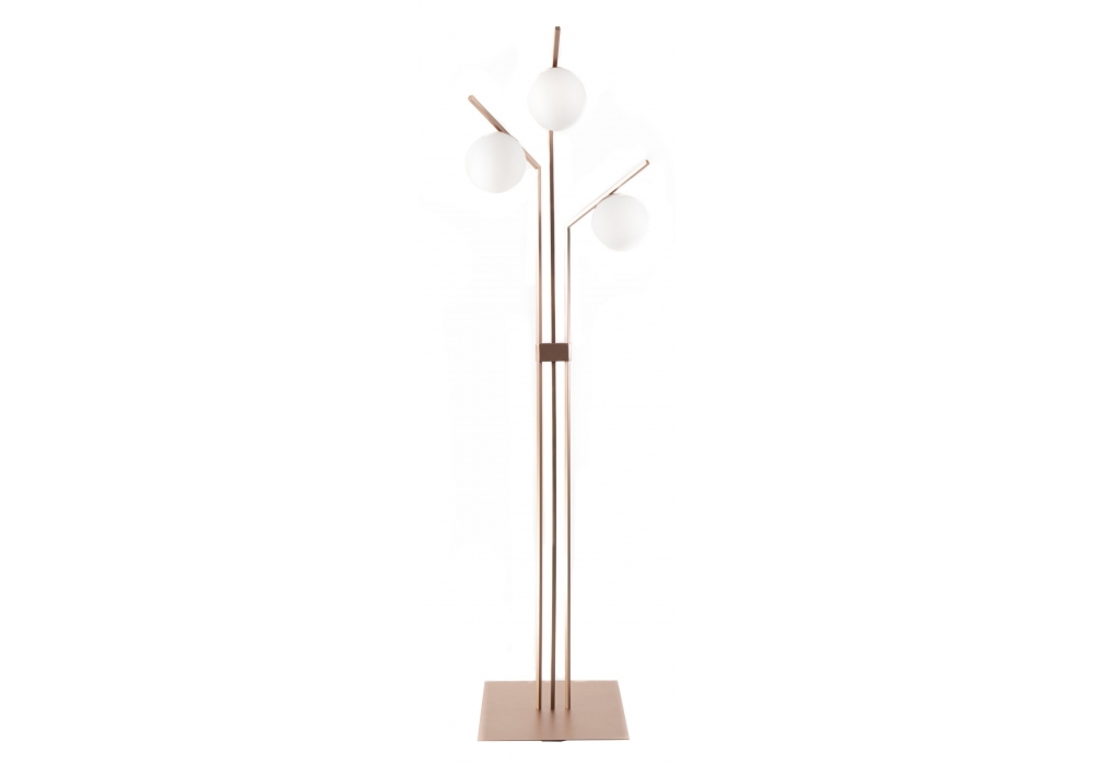 Dodo PT diseñada por Riflessi es una lámpara de pie formada por una base y varillas de metal pintado. Cable eléctrico en tejido negro. La fuente de luz proviene de bombillas de vidrio blanco satinado. Disponible en diferentes acabados.