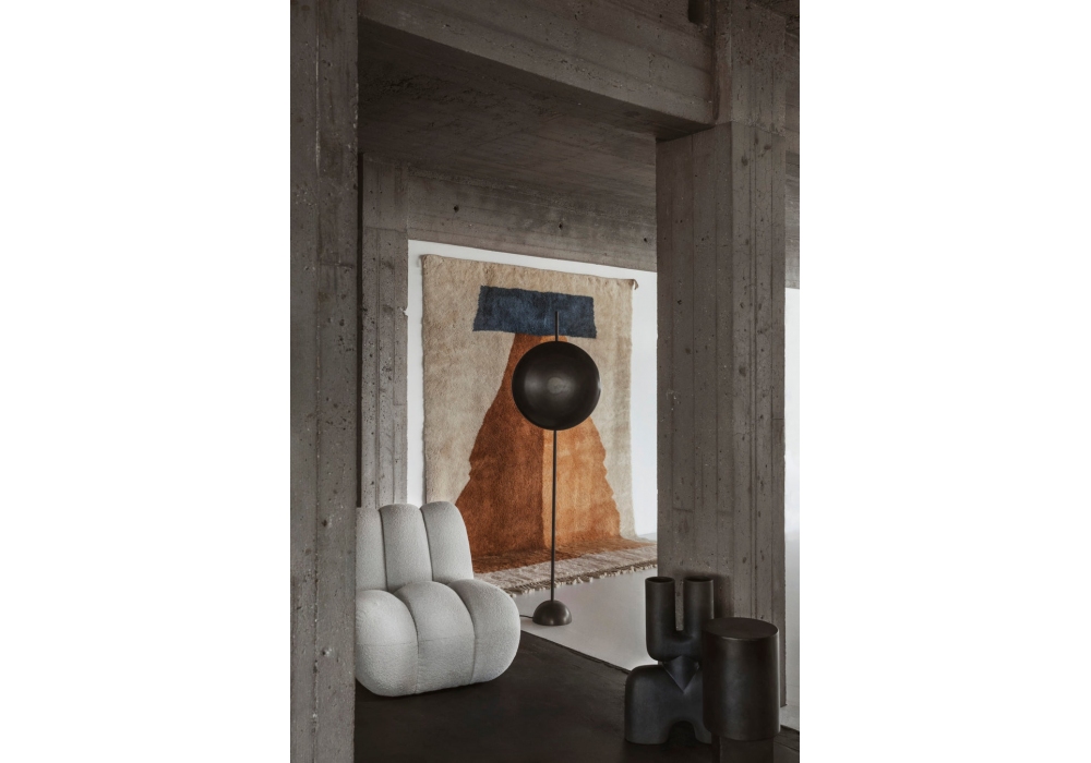 Totem diseñada por Kristian Sofus Hansen & Tommy Hyldahl para 101 Copenhagen es una lámpara de pie realizada en metal con acabado bronce.