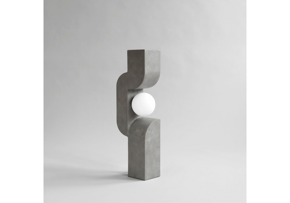 Sitting Man Big diseñada por Kristian Sofus Hansen & Tommy Hyldahl para 101 Copenhagen es una lámpara de pie realizada en hormigón y esfera de cristal opal.