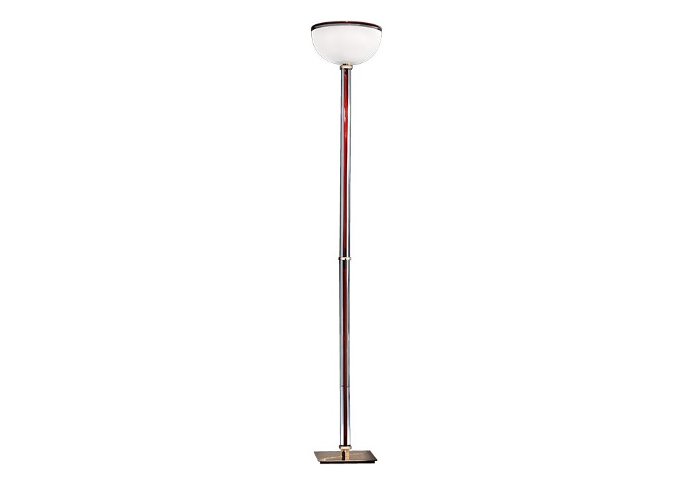 Tolboi diseñada y producida por Venini es una lámpara de pie con estructura de vidrio soplado a mano, a la que se aplica un núcleo de colores cálidos, disponible en 2 acabados. La estructura es de metal dorado.
