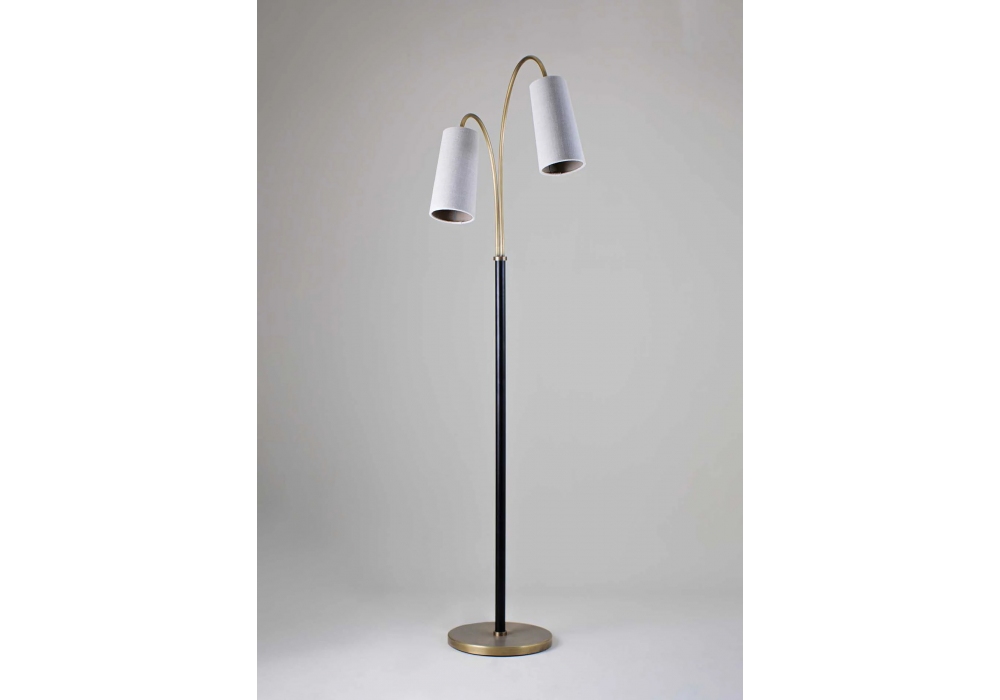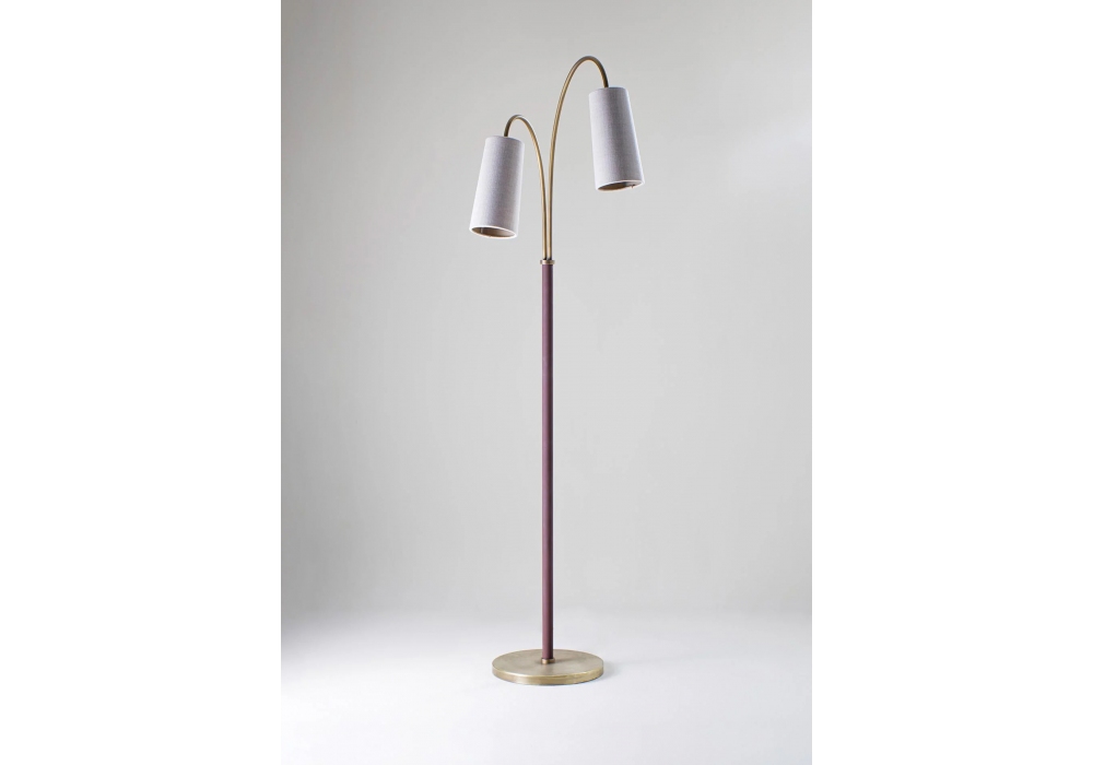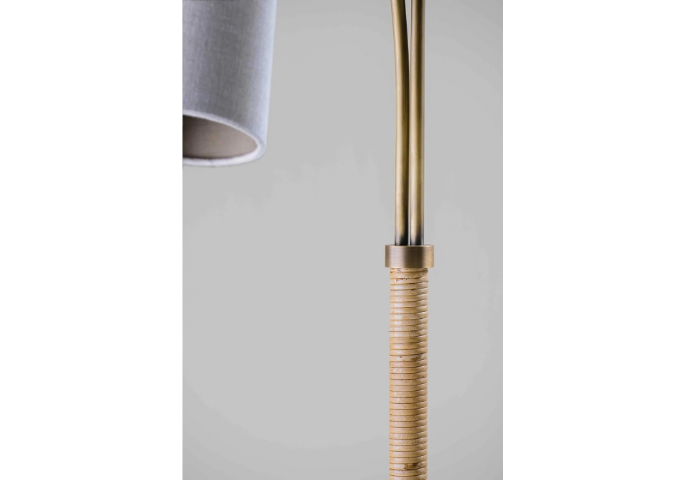Kelly diseñada y producida por Porta Romana es una lámpara de pie estructurada en acero y latón envejecido con base circular. Las pantallas son de tela y apantallan una fuente de luz con casquillo E14 de tipo LED. Kelly está disponible en diferentes acabados de pantalla y estructura.