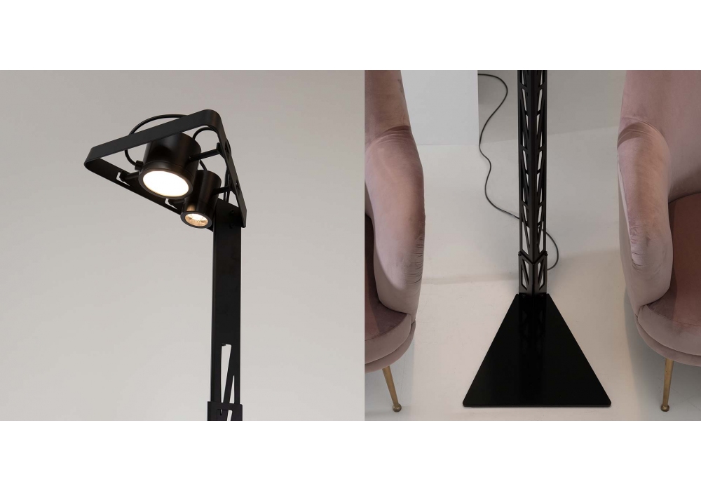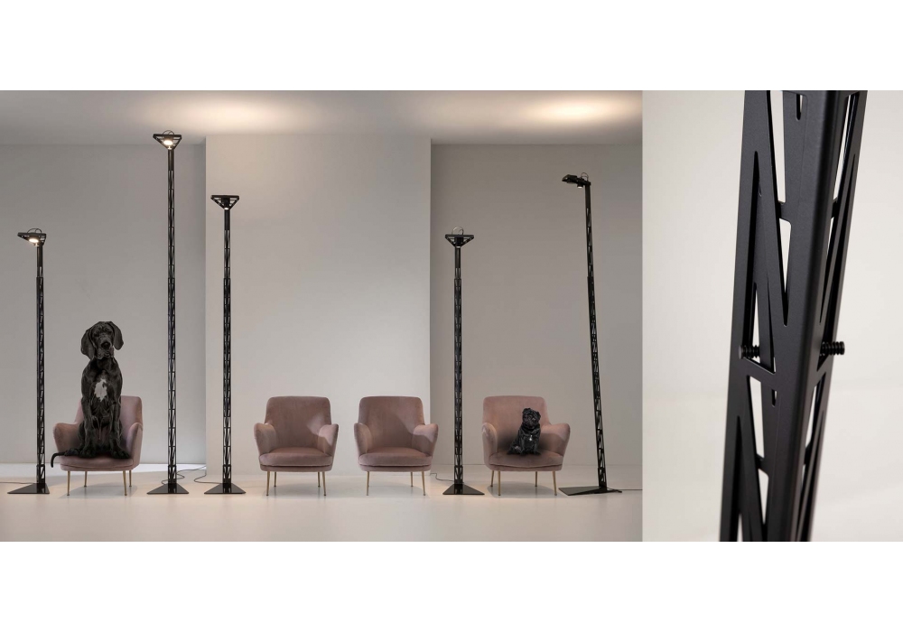 Fireman diseñada por Marc Sadler para Karman es una lámpara de pie con estructura en aluminio negro mate y difusor en policarbonato mate. Uso interno.