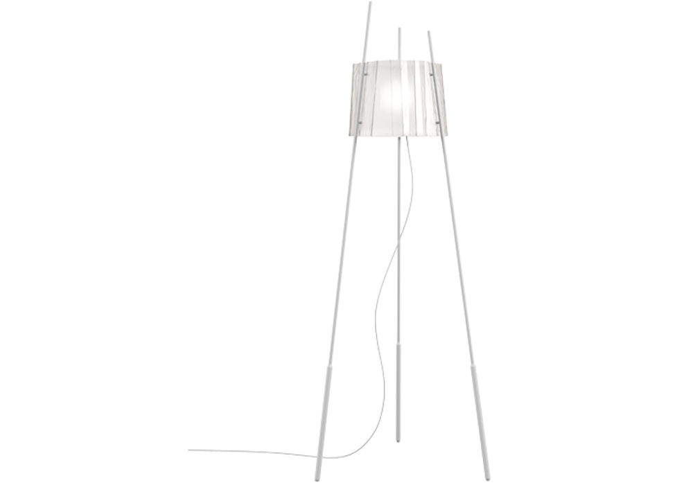 Tyla diseñada por Marc Sadler para Kundalini es una lámpara de pie regulable con estructura de metal pintado mate, difusor de vidrio soplado y arenado. Disponible en diferentes acabados.