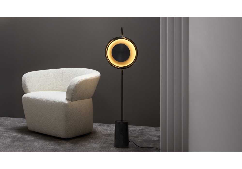 Pendulum diseñada por CTO Lighting es una lámpara de pie LED compuesta por un escultural pie en latón y apoyada en una sólida base en mármol Nero Marquina, disponible en acabado latón satinado o bronce. Dentro de la pantalla de vidrio soplado curvado a mano hay un núcleo de luz LED integrada que se puede atenuar.
