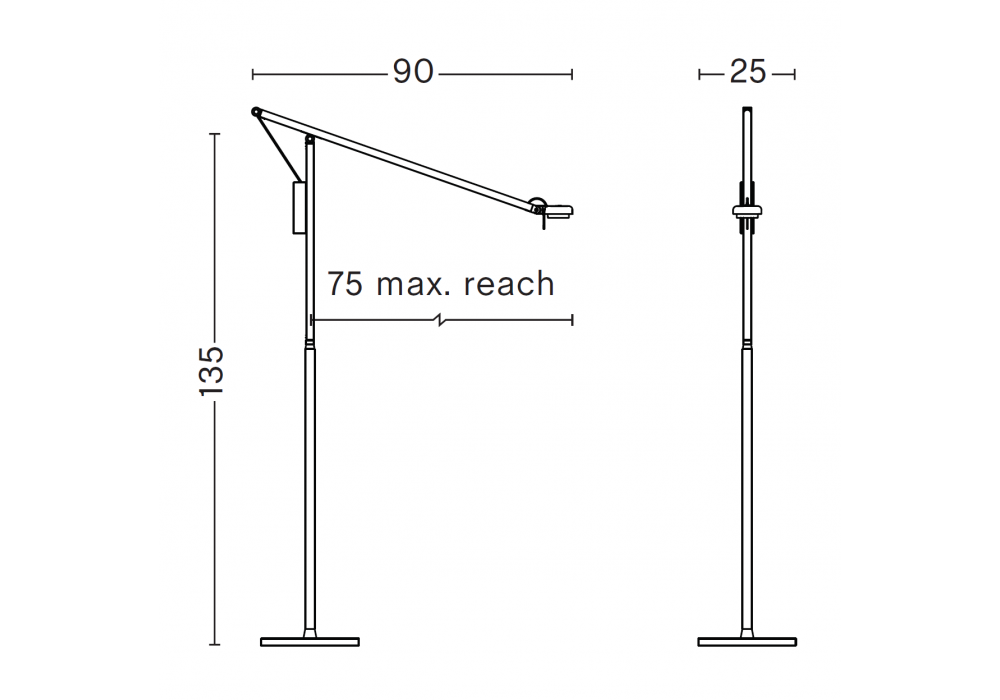 Fifty-Fifty diseñada por Sam Weller para Hay es una lámpara de pie con brazos en aluminio extruido con juntas y difusor en aluminio fundido a presión. Base en aluminio extrusionado con inserciones en aluminio fundido a presión. Cable de silicona negro.
