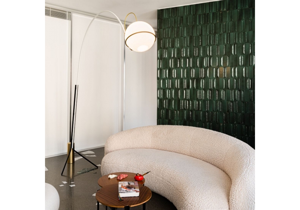 Alicanto diseñada por Francesco Librizzi para Fontana Arte es una lámpara de pie de luz regulable directa y difusa con base y tija en metal pintado y difusor en vidrio soplado y grabado al ácido. Cable de alimentación, enchufe y atenuador negros. Disponible en diferentes acabados.
