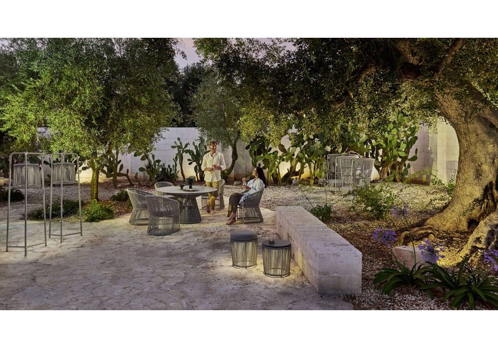 Tibidabo diseñada por R&D para Varaschin es una lámpara de pie con estructura en aluminio pintado en polvo y pantalla tejida a mano. Iluminación LED. Disponible en diferentes acabados.