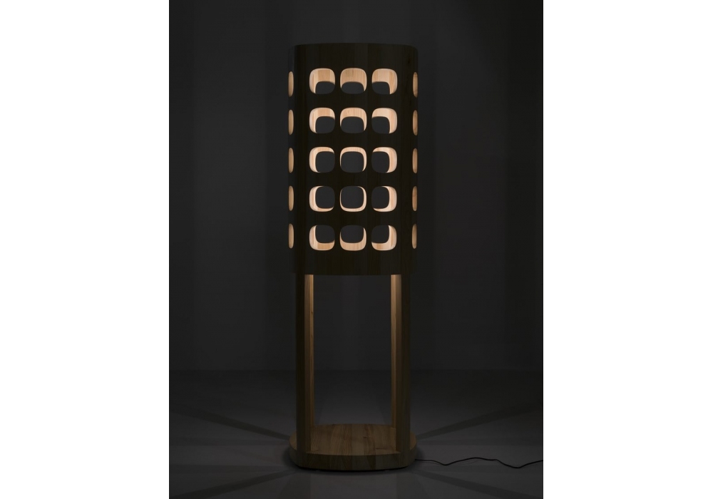 Forella diseñada por Michele De Lucchi para Riva 1920 es una lámpara de pie realizada en madera maciza. El juego de llenos y vacíos permite que la luz, gracias a las tiras de LED, se filtre a través de la madera.