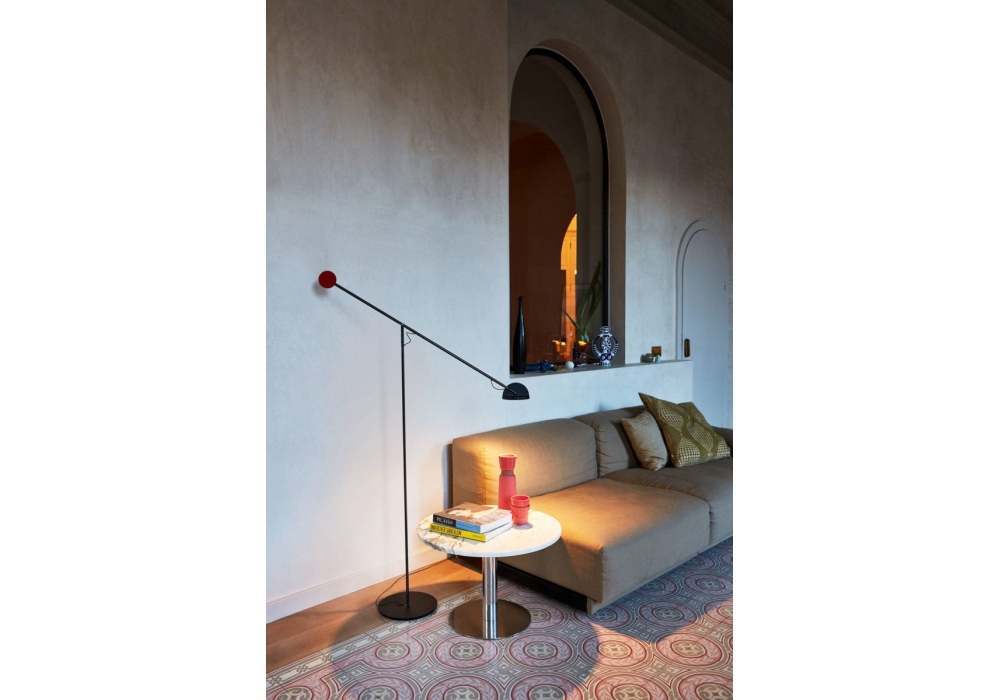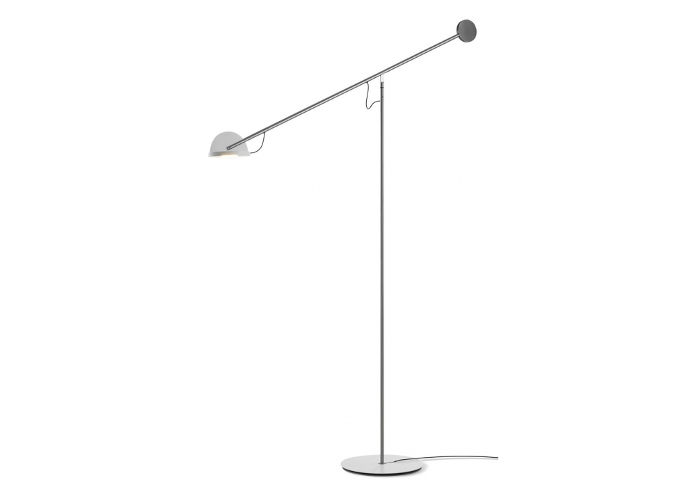 Copérnica P diseñada por Ramírez i Carrillo para Marset es una lámpara de pie con estructura en níquel satinado o grafito, base de acero y difusor de aluminio. Disponible en diferentes acabados.