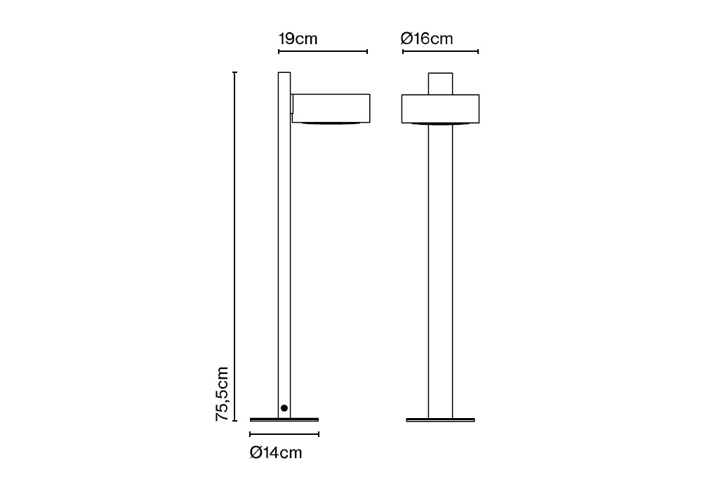 Plaff-on Bollard diseñada por Joan Gaspar para Marset es una lámpara de pie para exterior realizada en aluminio y pantalla de vidrio soplado opal. Disponible en diferentes acabados.