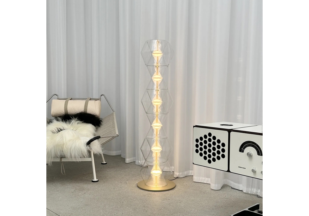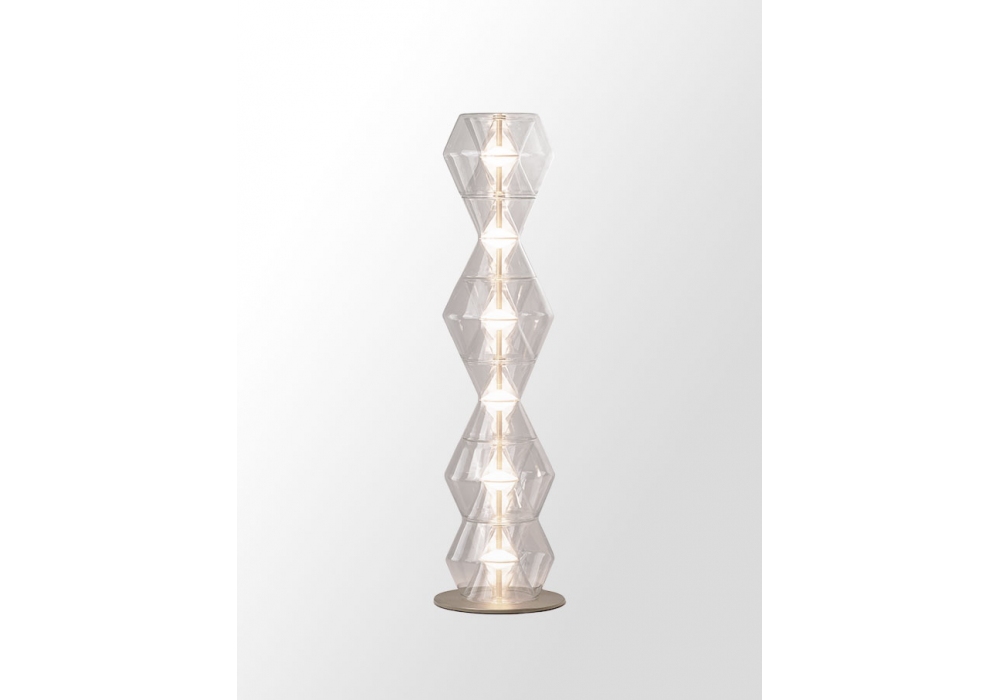 Argyle diseñada por Nichetto Studio para Rakumba es una lámpara de pie realizada en vidrio, disponible en diferentes acabados.
