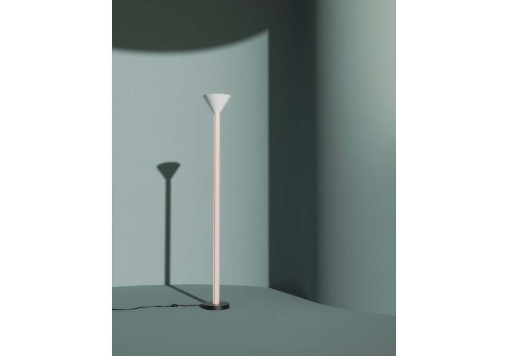 Profiles diseñada por Atelier Areti es una lámpara de pie realizada en metal pintado, disponible en diferentes acabados y en dos modelos. Bajo pedido también es posible personalizar los colores de la pantalla, del tubo y de la base.